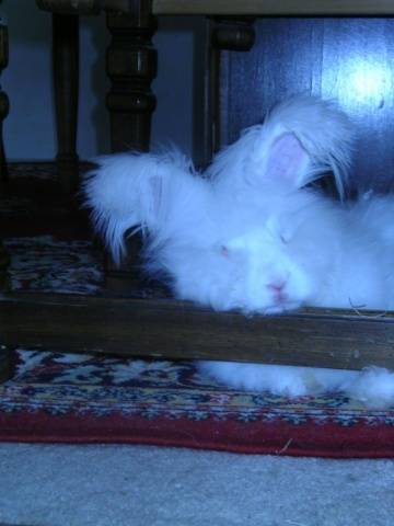 If the wool clogs the intestines, the animal will die. As a preventive measure, Angora people are fed fresh hay without restrictions. Hay prevents the formation of wool mats in the animal's digestive tract.