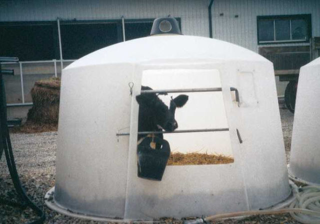 Each calf has a separate box made of windproof material. This is usually plastic. Depending on the climatic conditions of the region, such a stall can be equipped with a threshold that prevents the penetration of snow inside. This design is suitable for Canada and Russia in a snowy winter.