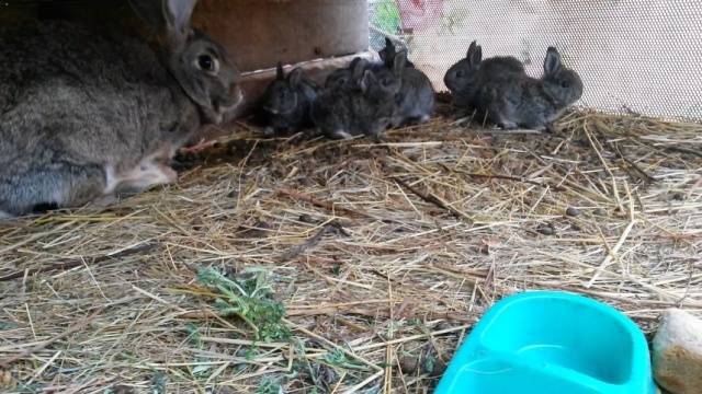 Before the okrol, the rabbit makes a nest in the mother liquor, pulling the fluff out of herself. The appearance of fluff is a sign of an imminent okrol. Many people advise not to disturb the rabbit for a week after birth. But if the giants live on the street and their mother liquors are heated, then a situation may turn out like in the video.