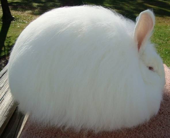 Have angora rabbit even the ears and head can be pubescent, as in the top photo. Or maybe there is only wool on the body.