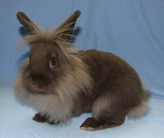 The mutation is supported by the fact that the quantity and quality of the mane is determined by the dominant gene M. With a heterozygous set of M / m, the rabbit does not show any particular fluffiness anywhere except the neck, as is clearly seen in the photograph.