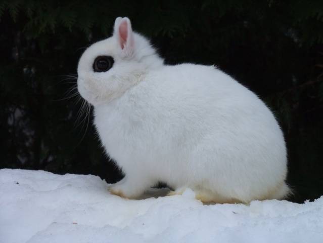 The breed is very similar to and closely related to Hermelin. Even the requirements of the breed standard are the same for them. But if hermelin can only be white, then a colored dwarf has 60 color variations. However, here, too, the most fashionable white suit. True, with a black border around the eyes.