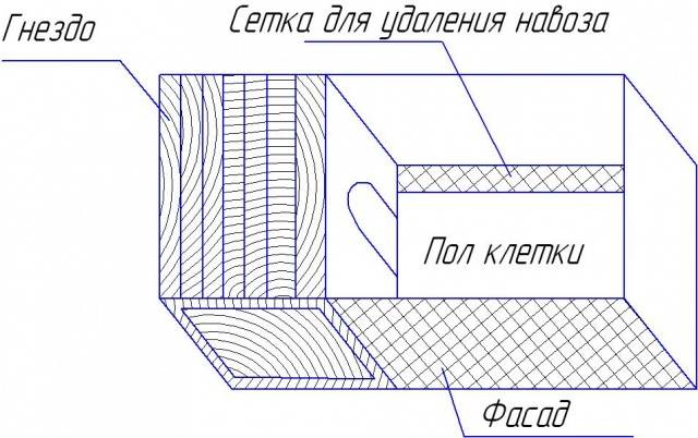 - For the rabbit, the floor is partially sewn up with a net. A board is placed in the mother liquor and sleeping compartment.