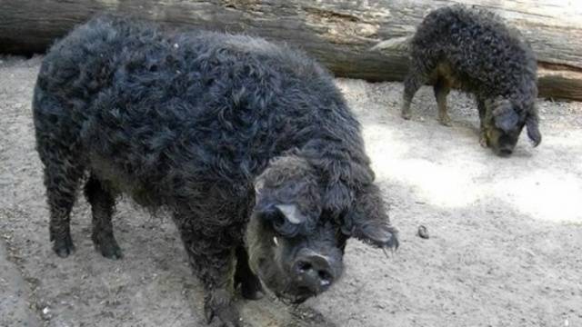 The upper photo of the Hungarian downy mangalica, the lower one - the Mangal pigs.