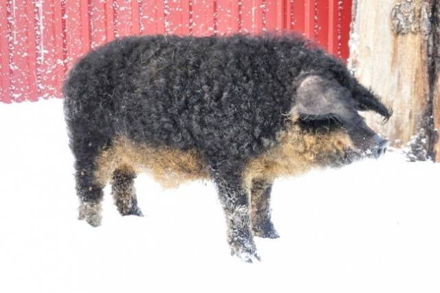 According to the owners of the Hungarian mangalitsa, its advantages include the ability to winter without a warm pigsty, only under a canopy.