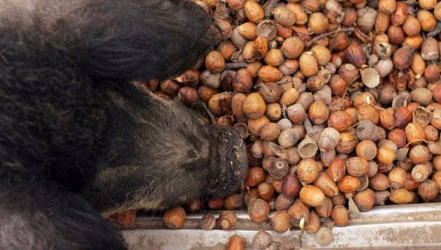 If possible, acorns, root vegetables, fresh corn cobs, pumpkin, legumes (the whole plant can be used), silage, waste from beer and flour milling are added to the diet. Raw potatoes can be given, but undesirable due to possible solanine poisoning. To destroy solanine, it is better to boil potatoes. Also for pigs, brooms are knitted from the branches of deciduous trees and shrubs. But in this case, you need to know the wild flora well. Some shrubs can be poisonous.