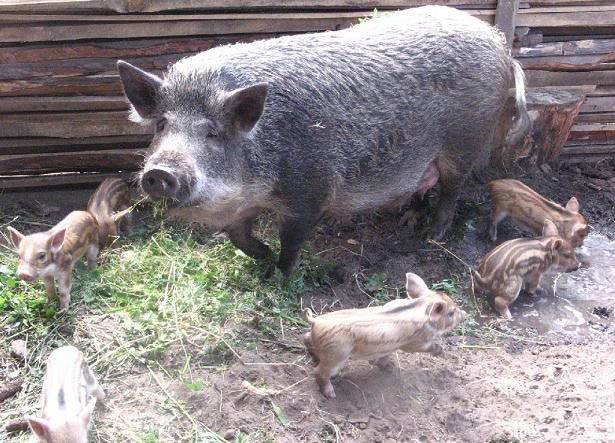 It's a good idea, but only if the pig does not have very strong wild genes that force the sows to protect their offspring. Aggressive pigs are as good as queens, but do not allow you to catch piglets and can tear a person. However, Mangalits has a strong enough immunity to independently deal with the umbilical cords and do without human intervention.