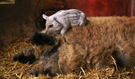 In the description of the Hungarian mangalitsa, it is indicated that piglets are born striped.