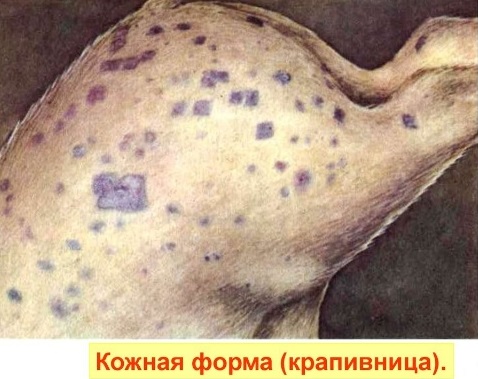But with a subacute form, complications are also possible. If the urticaria begins with diffuse inflammation of the skin, the animal usually dies. At the site of spots under the epidermis, sometimes serous fluid accumulates or the skin at the site of spots is necrotic. The scab is rejected and it all depends on the area of the lesion. Sometimes a piglet is easier to slaughter.