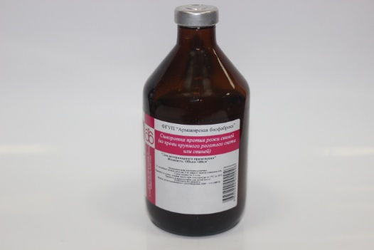 Serum against erysipelas is made from the blood of cattle and pigs that have had erysipelas. In Russia, it is produced by the Armavir Biofactory. The drug is intended for the treatment and prevention of erysipelas in pigs. Provides passive immunity for 2 weeks.