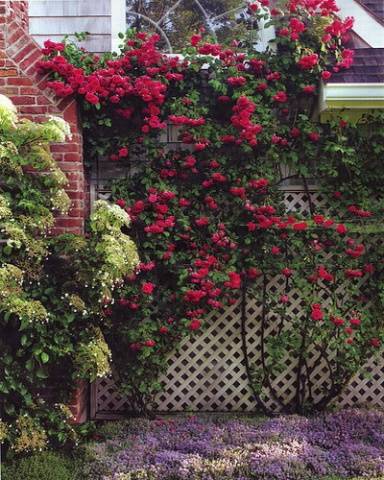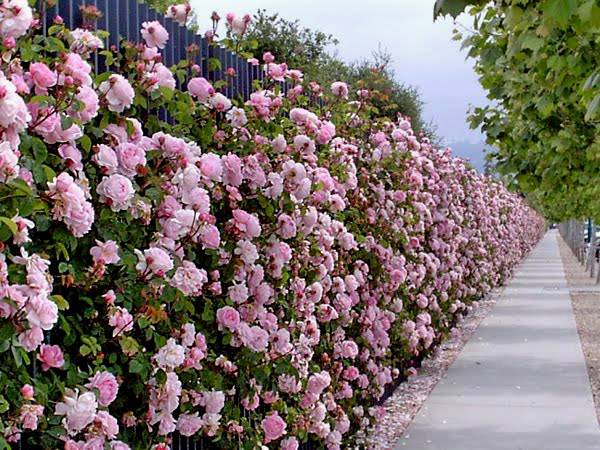 Rose bushes blend harmoniously into any landscape. In confirmation - a photo, which shows options for decorating various fences, including old nondescript fences.