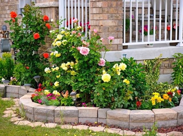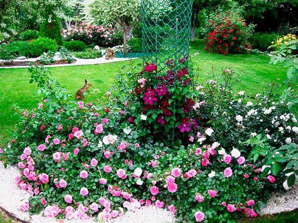 The middle tier is given to daffodils, tulips, gladioli. Clematis, primroses, herbal carnations will look good next to rose bushes. Look carefully, perhaps some photos will give an impetus to your imagination, and you will create a unique version of landscape design.