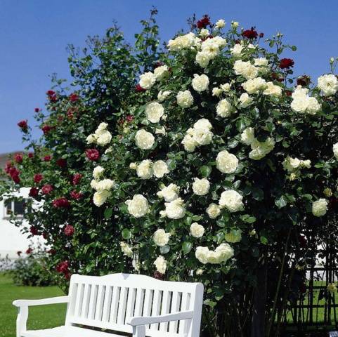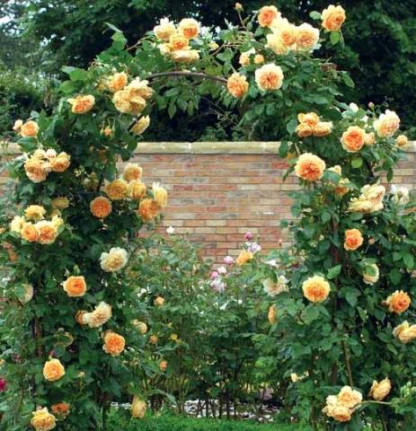 David Austin created not only bushbut also climbing varieties of English roses. The value of climbing varieties in endless flowering. The buds are located along the entire length of the lash. The English breeder currently has more than 20 varieties. Three years after planting a rose bush, the whip is already about three meters. You can experiment with climbing roses, creating unique landscape compositions.