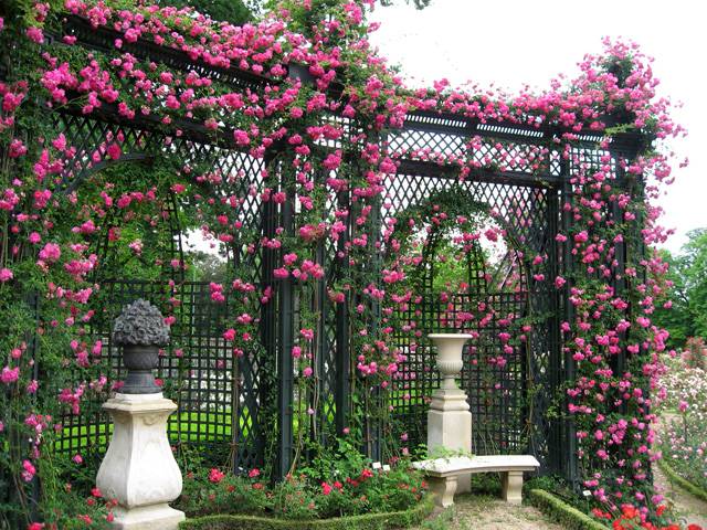 Curly roses decorate fences, benches in the garden, statues, fences, create airy gazebos.