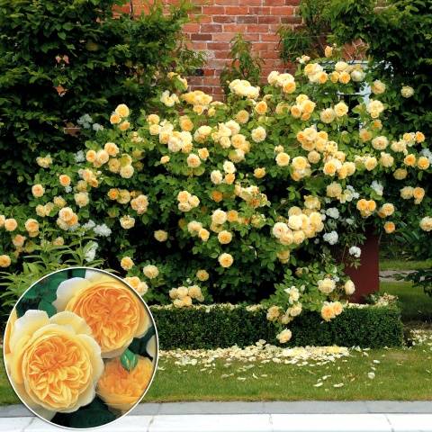 David Austin used the upright varieties Pilgrim and PortSunline to create the standard shape of the rose bushes.The picturesqueness of the standard ostins will add romance and elegance to your garden: there is one trunk, and a whole bunch of flowers! Flemish women will live with you for a long time, you just need to learn the rules of care. Here are several varieties of standard ostins: