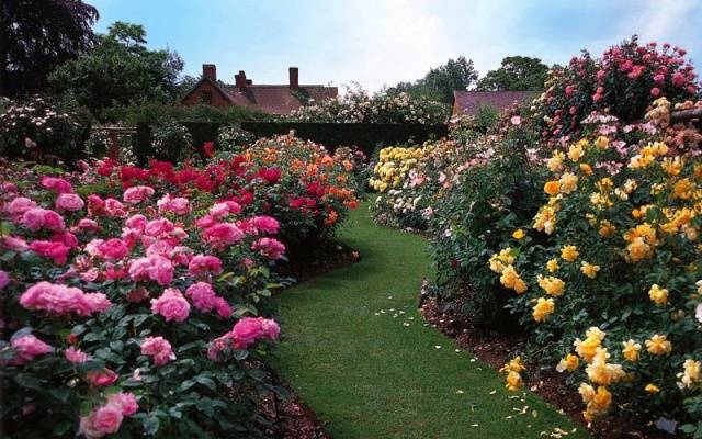 English roses, or as they are popularly called, Ostinks, were created by an ordinary farmer from England, David Austin, a little more than half a century ago. Their main differences from classic English roses are multiple flowering, original shape and color of buds, amazing aromas. Today Austin roses in landscape design are the main decoration of gardens, parks, summer cottages. Just take a look at this photo, what a beauty!