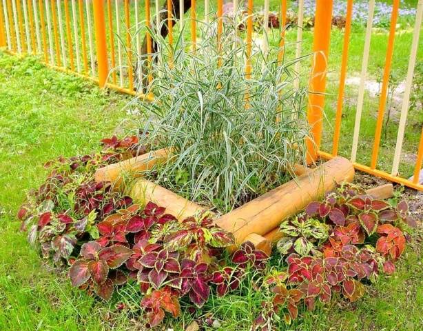 Framing can be not only from stones, but also from logs, and indoor plants, for example, coleus as in the photo, can be taken as plants.