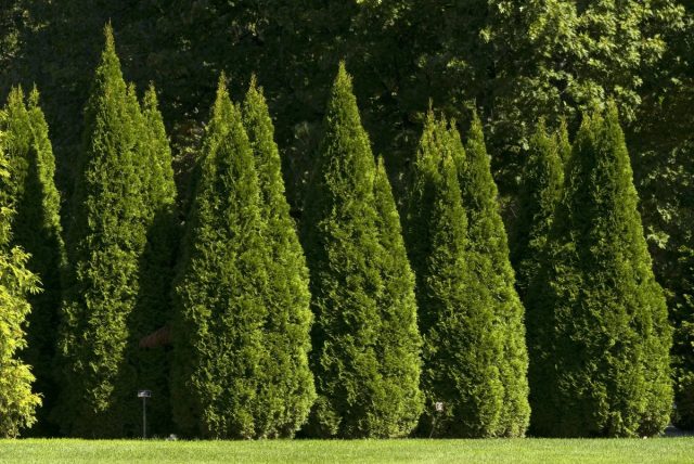 Western thuja is also a fast-growing coniferous species. A plant in design is very popular, it is planted as part of a composition, and is often used as a material for a hedge.