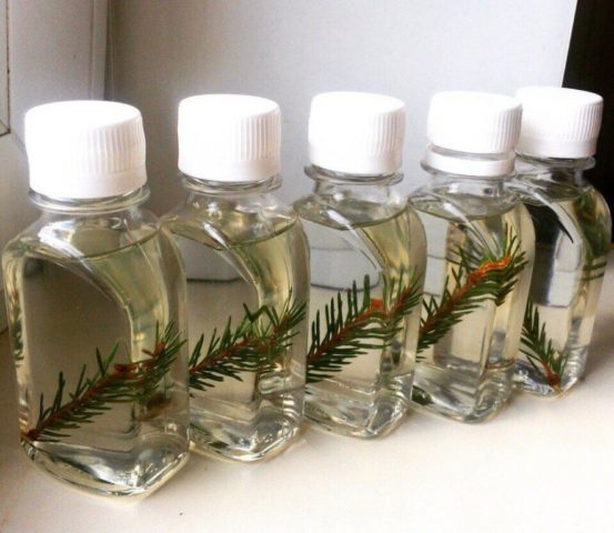 The technology for making fir oil at home using the infusion method is quite simple. Young buds and shoots will be required. Raw materials should be harvested in May, when the plant begins to grow intensively. The cooking algorithm is as follows: