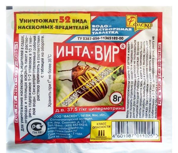 - Inta-Virom (1 tablet per 10 liters of water) or the drug "30 plus" (according to the instructions) from silkworms and aphids;