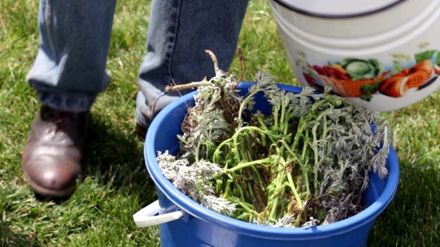 - Prepare and use in the same way infusion of tops or stepchildren of tomatoes (only initially, for 1 kg of plant material, you need to take 5 liters of water).