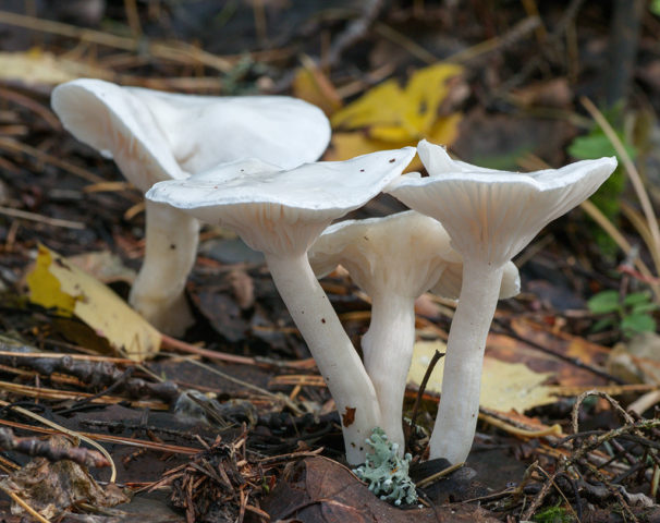 Another difference between the species is that the fruiting of the snow-white hygrophor continues until the first frost.