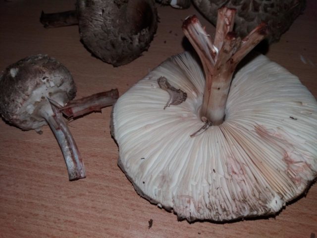 Redness at the cut site is a characteristic feature of the blushing umbrella, which helps the mushroom picker not to confuse it with other relatives of this species directly during harvesting.