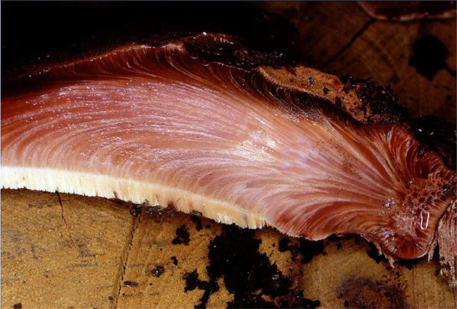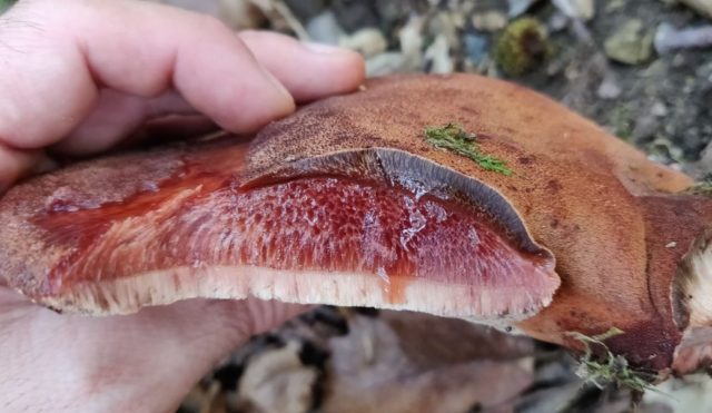 - When cut, the fresh liver mushroom releases a reddish juice - this also enhances its resemblance to a piece of meat or liver.