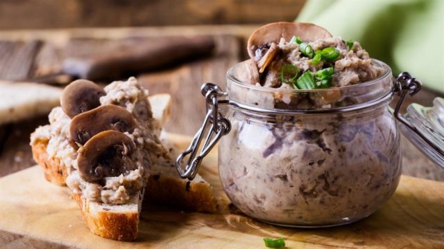 The crushed ingredients are again sent to the pan and fried for another 10 minutes, after which they are placed in a half-liter sterile jar and poured with 1 large spoonful of vinegar. You can use mushroom caviar with sandwiches or as a filling for pancakes and dumplings.