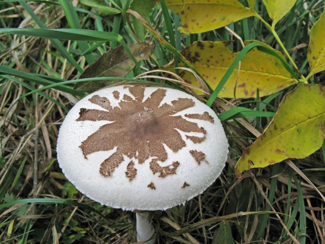 At the beginning of growth, it is almost impossible to distinguish from a field umbrella. In adult specimens, the surface of the cap turns brown, the film breaks, and long cracks form. There is no scaly coating, the structure is dry, smooth.