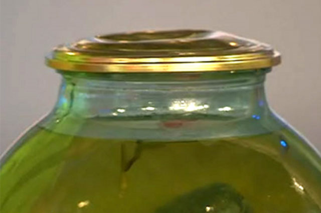 Bombage (swollen lids) - the first sign of spoilage of canned mushrooms