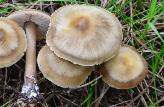 The hat does not have one tone, the convex central part is darker, often with an ocher tint. A hygrophane strip in the form of a circle is determined along the edge; in a humid environment it is more pronounced, in a dry environment it is weaker. May be completely absent.