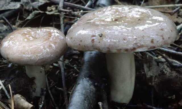 The miller is wet. Another name is gray-lilac milk mushroom. Unlike zoneless, it has a dome-shaped, sticky, wet cap of gray or violet-gray color. Its size is from 4 to 8 cm. In older specimens, it becomes widespread. The length of the leg is from 4 to 7 cm, the thickness is from 1 to 2 cm. It is dense, the surface is sticky to the touch. The pulp is spongy, tender. Refers to rare species. Grows in moist deciduous forests on mosses. Loves the neighborhood of birches and willows. Occurs singly or in small groups. There is no exact information about edibility; some authors classify it as conditionally edible.