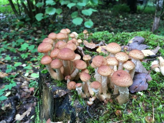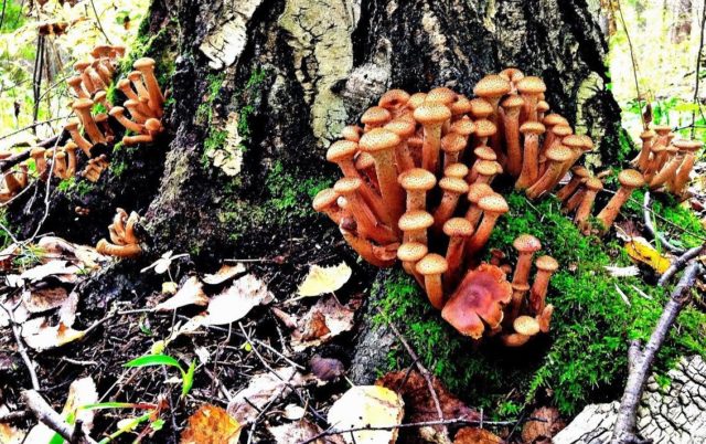 In the northwestern districts of the region, where large forests of mixed nature are mainly observed, it is possible to collect more than one basket of autumn honey agarics. Moreover, they grow not only on the stumps of deciduous trees, but also on weakened birches, lindens, etc.