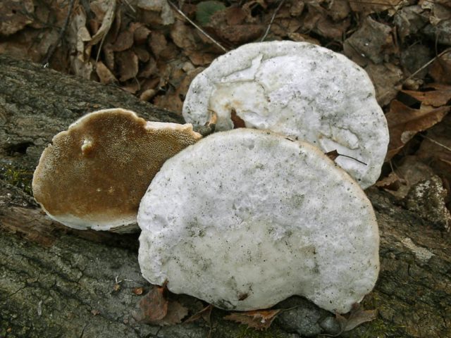 There are three types of posts: astringent, bluish-gray and flat tinder fungi. The binders have large white caps. An important feature is a large accumulation of water and bubbles on the surface, "crying". They are similar in appearance to the fractured aurantioporus from the Boletov family, but they have a more rounded and oblong shape. Compared to other types of mushrooms of this type, they have a softer structure, a sharp and rich mushroom aroma. The astringent variety can often be seen on apple trees with aspens. It forms on fallen branches and causes rot.