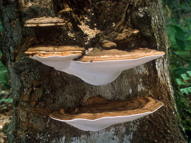 Astringent is a widespread and unpretentious woody tinder fungus of white color, with a rounded or complex body shape. It belongs to the annual tinder fungus, it is distinguished by a white, milky color that attracts the attention of mushroom pickers, a medium-sized fruit body, which has a different shape: semicircular, triangular, shell-shaped, kidney-shaped. Individual specimens can grow to large sizes, but this is rather an exception. On average, the thickness of the caps is 3-5 cm, but this is directly influenced by the growing conditions. The knitting post grows singly or in groups, where individual mushrooms grow together and acquire an irregular, sometimes very original, shape.