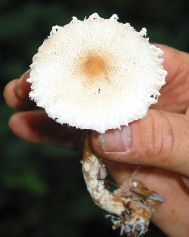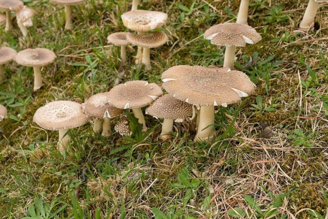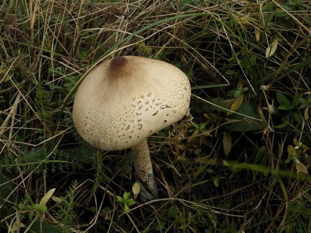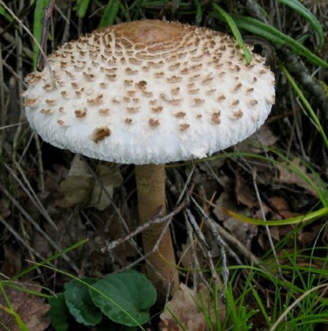 Refers to poisonous mushrooms. Outwardly, it is very similar to an umbrella. Has a white cap, which is covered with brown or brownish-pink scales. Its diameter can be up to 30 cm. In young fruit bodies, it is domed, but as they mature, it flattens.