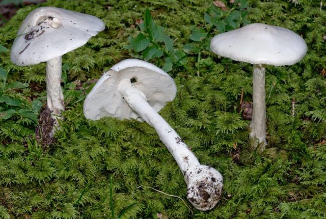A well-known representative of deadly fungi, characterized by high toxicity. Its cap can be up to 12 cm in diameter. In youth it is semicircular, in old fruit years it is flat. The leg reaches 12 cm in length, 1-1.5 cm in diameter.
