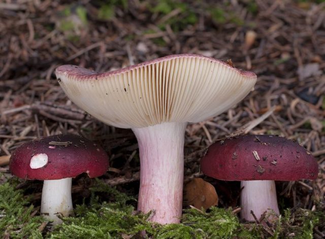 This mushroom is similar to the brownish variety, but the shade of the cap is yellow-olive, brown or deep red. You can recognize a whole russula by the yellowish specks on the stem and by the pungent taste of the pulp in adult mushrooms.