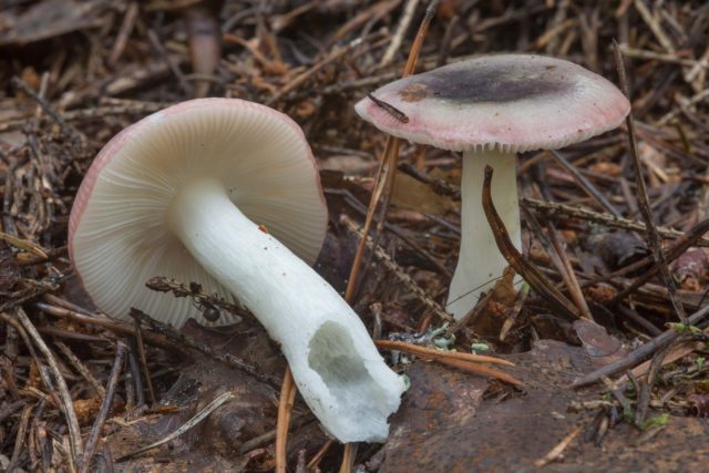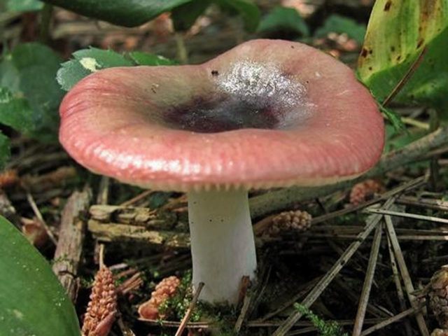 The presence of a dark pigment distinguishes it from another representative - a pink russula, a poisonous mushroom with a uniform color of the cap, the color does not change during the entire ripening period. The fragile one acquires a similarity only in its mature form. The photo below shows how the color of the cap changes as it grows.