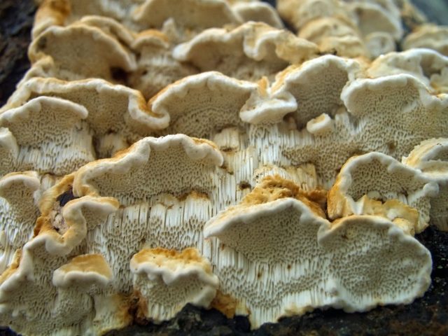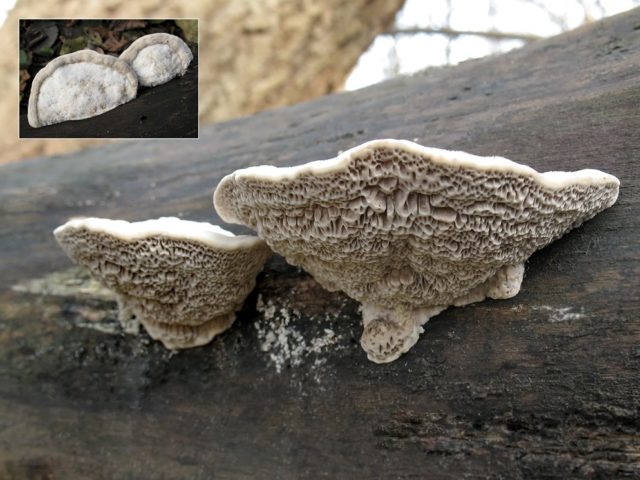 Trametes Trog can be evenly spread with folded edges or an inverted spore-bearing sponge outward.