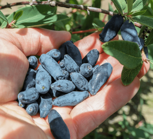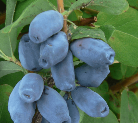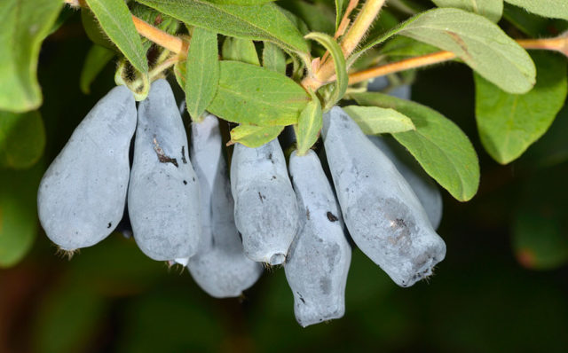 Malvina's honeysuckle berries are covered with a gray waxy bloom