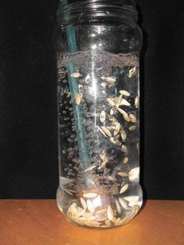 There is nothing complicated here, you just need to pour water into any container and throw the seeds there. After a couple of minutes, the pacifiers will float to the surface.