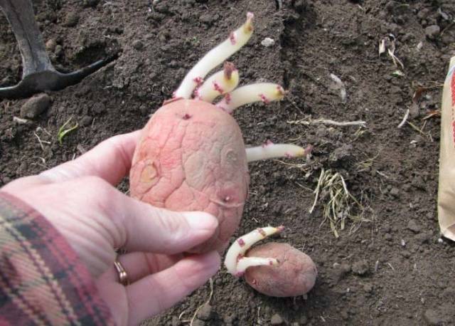 Two weeks before planting, the root crop is taken out of the cellar. Tubers are sorted, damaged and diseased are thrown away. The mass of seed potatoes should be in the range of 60-75 grams. The more eyes on it, the better. For germination, the tubers are harvested in a bright room, the air temperature in which is maintained at a level of +12 to +15 degrees. When the sprouts stretch up to 3-4 cm, the potatoes are planted.