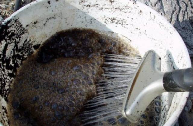 - At the time of a set of green mass, a semi-liquid mullein or a composition of 1 tbsp. tablespoons of urea in a bucket of water. Enough 0.5 liters of any of the fertilizers.