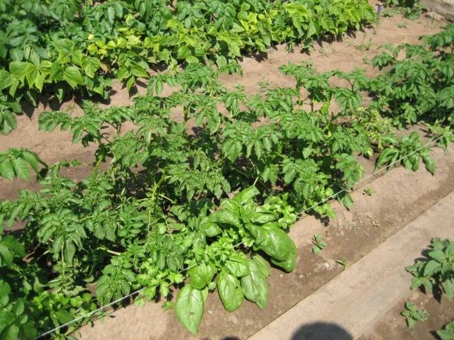 The soil under the spreading bushes stays moist longer, which means that watering the potatoes will need several times less.