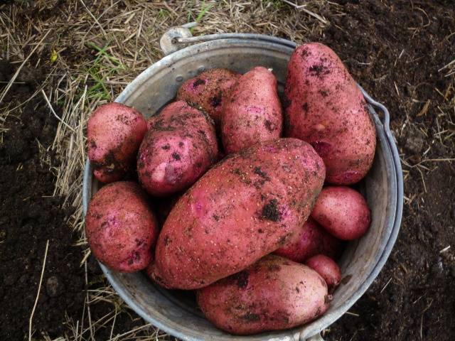 They start harvesting Rodrigo potatoes as soon as the first signs of ripening appear. Yellowed and dry tops signal that you can no longer hesitate. After digging up, the entire crop is sorted. Potatoes intended for long-term storage are dried in the shade for 2-3 days. Tubers cleaned from dirt are laid in a basement or storage room, in which the following conditions are met: