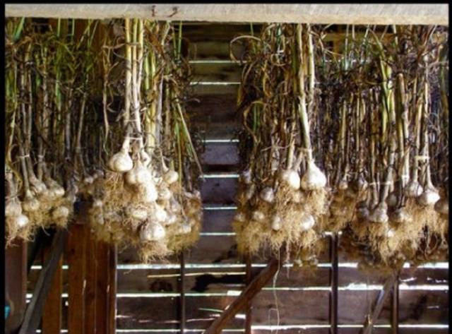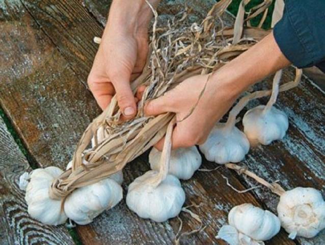 The option is chosen depending on possible conditions. In the presence of a dry basement or attic, garlic is well preserved in:
