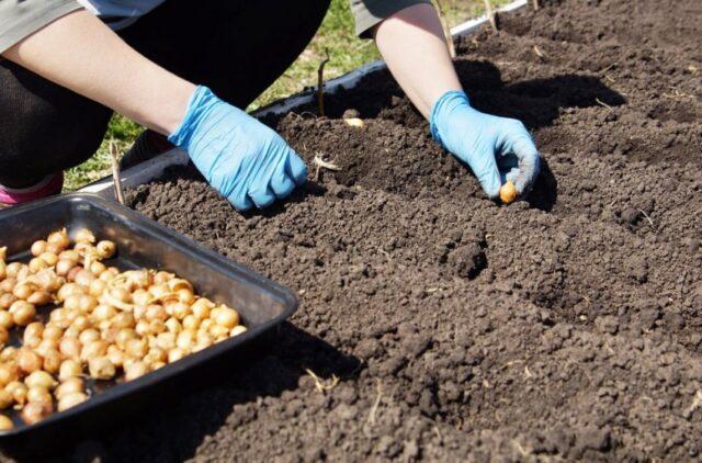 Sevok of Cupido onions are planted in grooves 5 cm deep