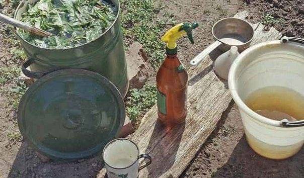 Nettle often becomes the basis of such fertilizer, but dandelion, wormwood, yarrow, and tomato tops are suitable. It is better to prepare such an infusion somewhere on the sidelines, because it has a terribly unpleasant smell.